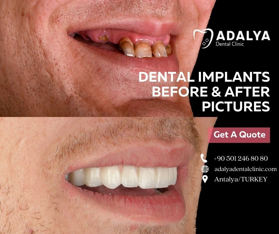 You can get information about the treatment and our quality in Turkey by examining the before and after pictures of tooth implant treatments performed in our clinic in Antalya, Turkey.