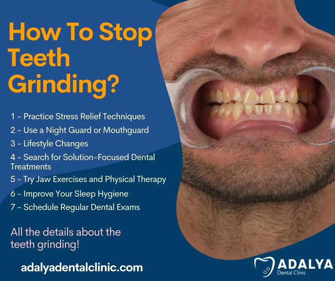 Stopping teeth grinding at night requires targeted strategies. Practices that you can easily apply, especially before going to bed at night, can be very effective for people who have problems with grinding their teeth at night.